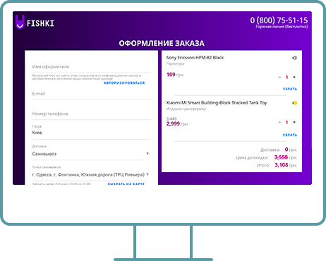 Checkout for the site fishki.ua